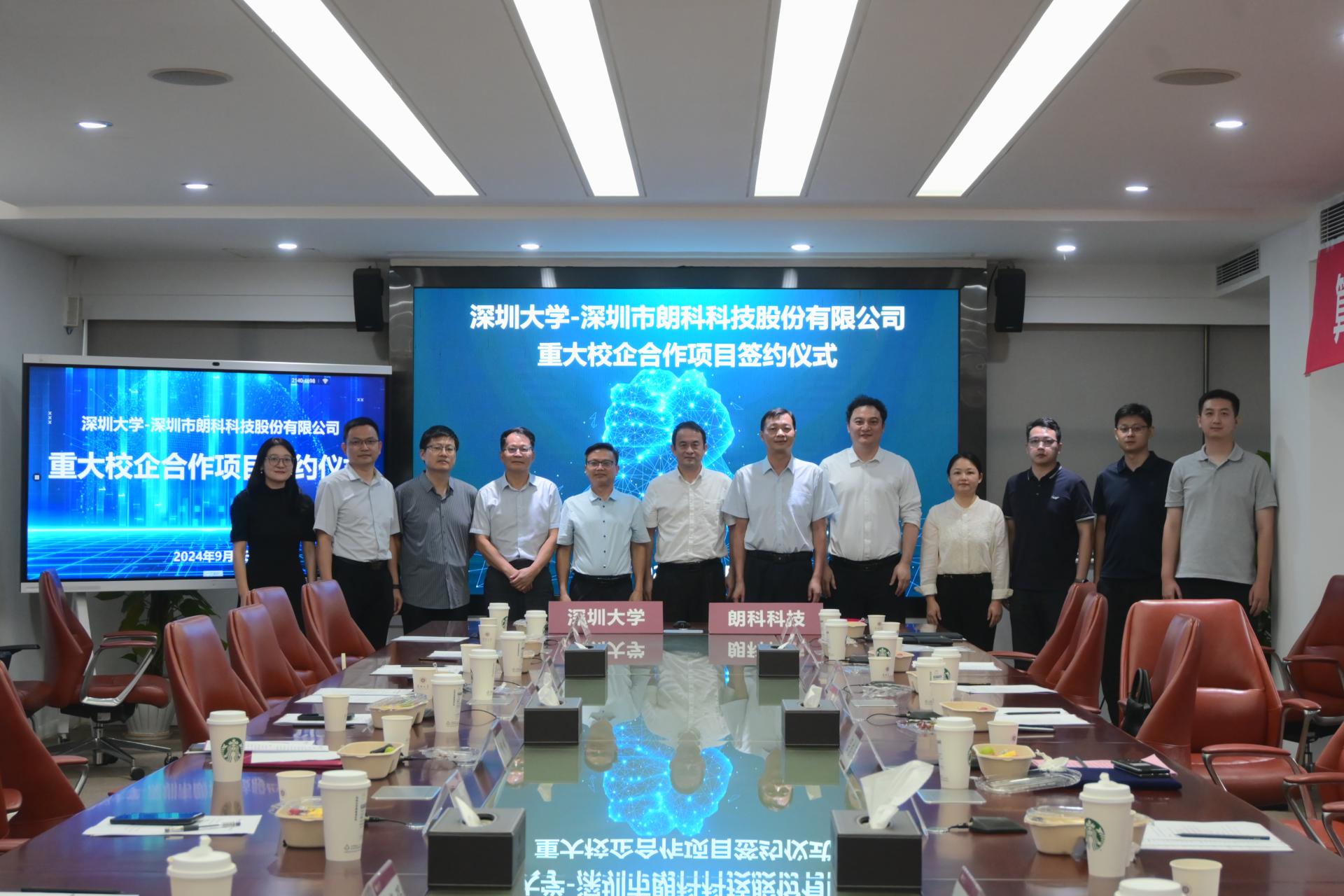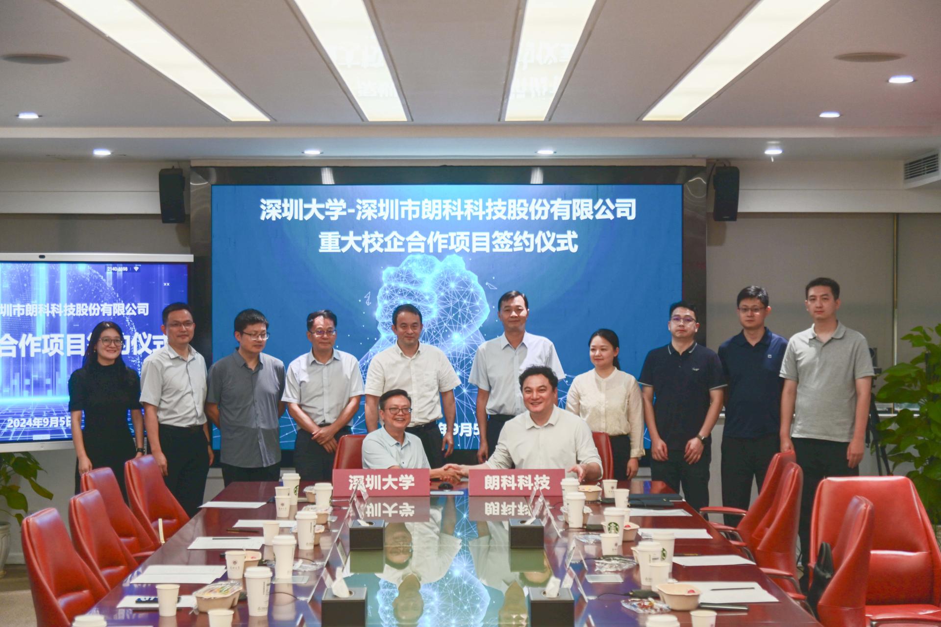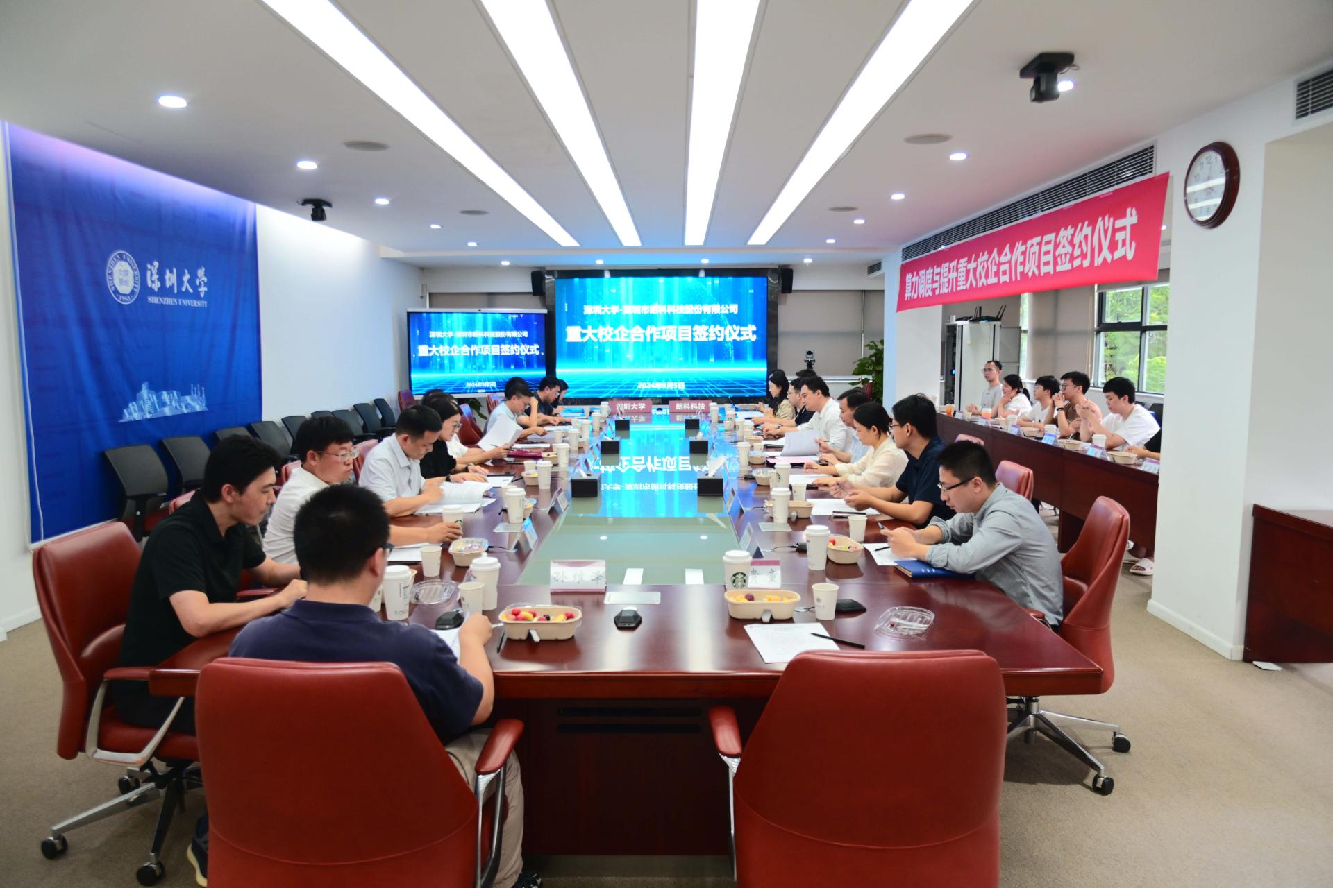 On September 5, 2024, the signing ceremony of the major University-Enterprise Cooperation Project between Shenzhen University and Netac Technology Co., Ltd: SZU-Netac Arithmetic Scheduling and Enhancement Joint Laboratory, was held in conference room 201, Huiyuan building, Yuehai campus of Shenzhen University. Prof. Hui Zhou, Vice President of Shenzhen University; Prof. Lei Huang, Executive Dean of the College of Electronics and Information Engineering; Mr. Zhirong Lv, Chairman of Netac Technology Co., Ltd; Mr. Lisong Xu, Executive Vice President of Netac Technology Co., Ltd, and other relevant departments attended the signing ceremony. It was also attended by Dr. Yue Chen, Director of the Department of Laboratory and State Assets Management, Dr. Yang Wei, Vice Dean of the Department of Science and Technology Development, Prof. Jianqiang Li, Executive Director of the National Engineering Laboratory for Big Data System Computing Technology, and Prof. Bin Qin, Secretary of Information Center. The meeting was hosted by Prof. Peichang Zhang, Vice Dean of the College of Electronics and Information Engineering.