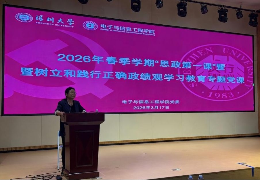 3月17日,电子与信息工程学院在致信楼N107举办“思政第一课”暨树立和践行正确政绩观学习教育专题党课,党课由党委书记周浩江、执行院长黄磊主讲,全院党团支部学生委员、班干部等百余名学生骨干参加。