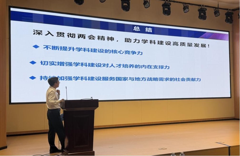 黄磊以全国两会顺利闭幕为背景,围绕“深刻领会两会精神,争创学科‘双一流’”的主题向青年学生讲“思政第一课”。他指出今年全国两会是在“十四五”圆满收官、“十五五”崭新开局这一关键节点上召开的重要会议,会议关于因地制宜发展新质生产力、一体推进教育科技人才发展的重要部署,为高校学科建设与人才培养指明了前进方向、提供了根本遵循。