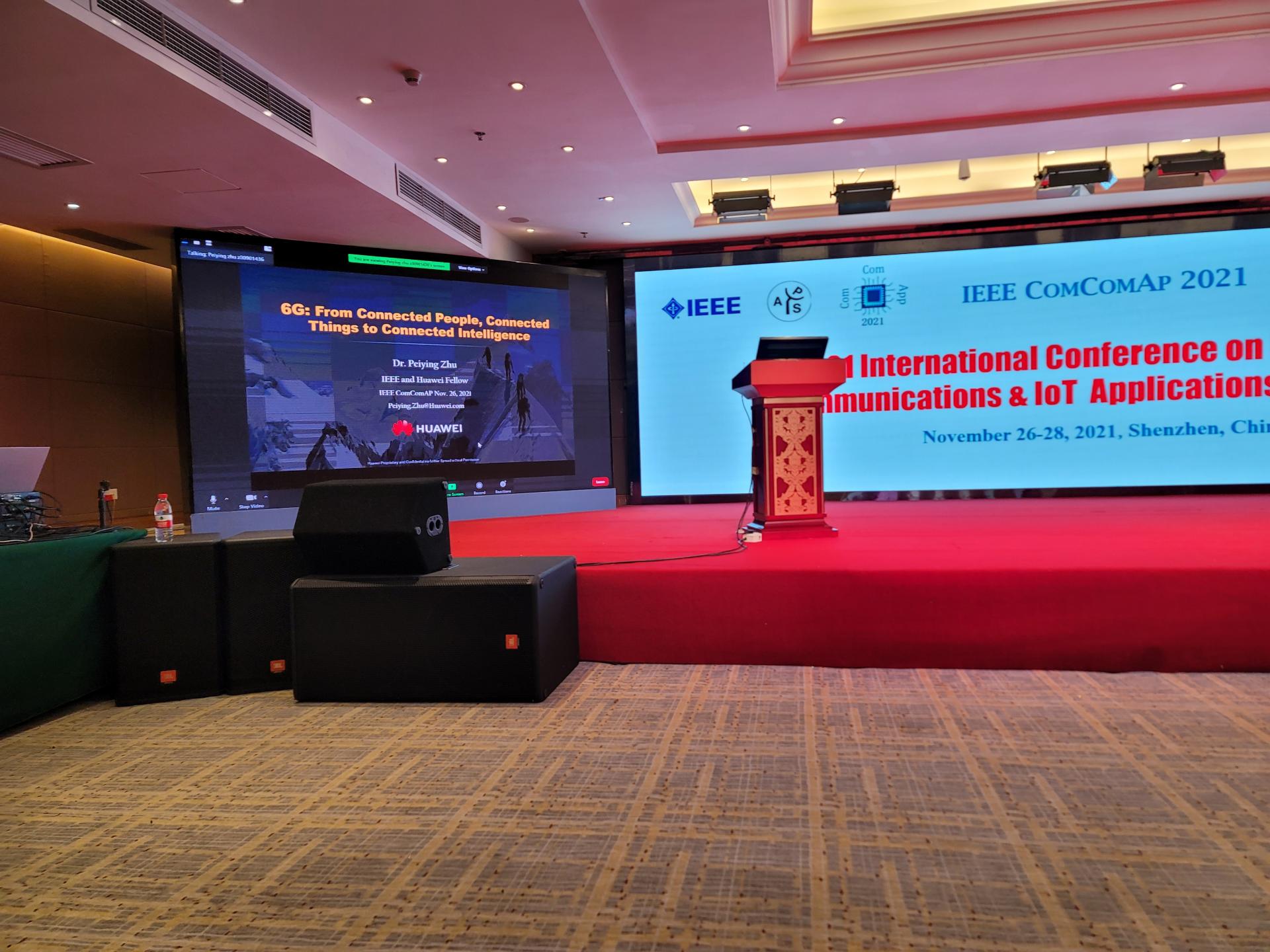 The 2021 IEEE International Conference on Computing, Communication and IoT Applications (IEEE ComComAp 2021) was held from 26 to 28 Nov 2021 at Vienna International Hotel (Shenzhen North Station Store), Shenzhen, China. It was organized by Southern University of Science and Technology, and co-organized by the IEEE Antennas and Propagation Society-Shenzhen Chapter (IEEE APS-Shenzhen Chapter) and the IEEE Beijing Section. Professors from Southern University of Science and Technology attended the conference, including Vice President Xiaodong Zhang, Dr. Qingfeng Zhang (General Chair of IEEE ComComAp 2021), and Prof. Yejun He from Shenzhen University (TPC Chair of IEEE ComComAp 2021,Chair of the IEEE APS-Shenzhen Chapter). Prof. Ming Yu from Southern University of Science and Technology performed the opening ceremony. The meeting has gathered around 200 in-person and online experts, scholars and industrial representatives from the fields of computation, communication and IoT applications, antennas, and radio frequency. IEEE ComComAp 2021's mission is to bring together innovative researchers, developers, and practitioners from academia, industry, and governments to disseminate their significant research findings and to expand their innovative research ideas. The conference received more than 102 paper submissions. All papers were rigorously and independently peer-reviewed by more than 61 Technical Program Committee (TPC) members and a large number of reviewers. The program committee had a difficult task to select 73 full papers among many high-quality submissions for presentation and publication, representing an overall acceptance rate of about 71.6%. In addition, we invited 8 renowned IEEE Fellows to deliver their keynote speeches. Those selected and orally presented papers have been included in IEEExplore and indexed by EI.