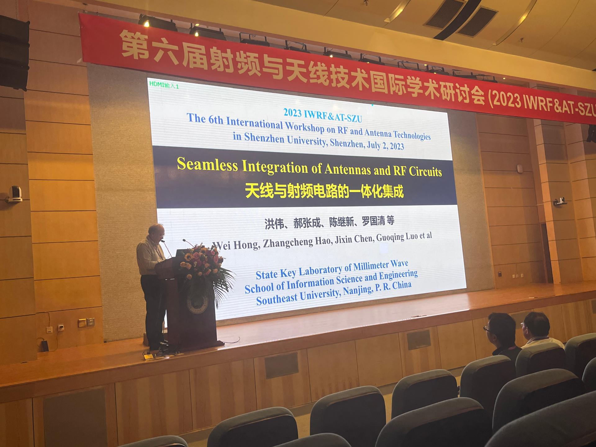 2023 International Workshop on Radio Frequency & Antenna Technologies in Shenzhen University (2023 IWRF&AT-SZU)was held on July 1-2, 2023 in Shenzhen. The workshop’s general chair is President Junfa Mao of Shenzhen University. Prof. Yejun He (Chair of IEEE Antennas and Propagation Society-Shenzhen Chapter) is Executive Chair of this workshop. The organizers of this workshop are as follows.(1) State Key Laboratory of Radio Frequency Heterogeneous Integration, Shenzhen University(深圳大学射频异质异构集成全国重点实验室);(2) Shenzhen Key Laboratory ofSemiconductor HeterogeneousIntegration Technology(深圳市半导体异质集成技术重点实验室);(3) Guangdong Engineering Research Center of Base Station Antennas and Propagation(广东省基站天线与电波工程技术研究中心);(4) Shenzhen Key Laboratory of Antennas and Propagation(深圳市天线与电波重点实验室);(5) College of Electronics and Information Engineering, Shenzhen University, China(深圳大学电子与信息工程学院).The Co-organizer is IEEE Antennas and Propagation Society-Shenzhen Chapter, IEEE Beijing Section(IEEE北京分部,IEEE天线与传播学会-深圳分会).