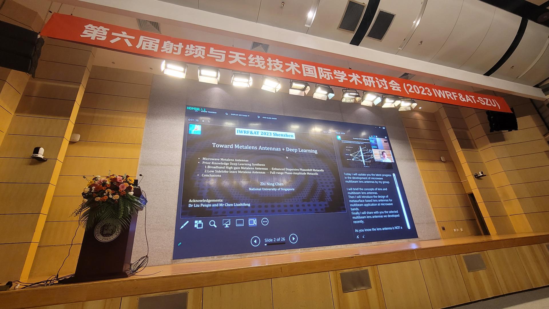 Prof. Zhi Ning Chen from National University of Singapore, Academician of Singapore Academy of Engineering (IEEE Fellow)delivered a keynote speech entitled “Towards Metantennas +Deep Learning”: