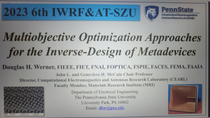 Prof. Douglas H. Werner from The Pennsylvania State University delivered a keynote speech entitled “Multiobjective Optimization Approaches for the Inverse-Design of Metadevices”: