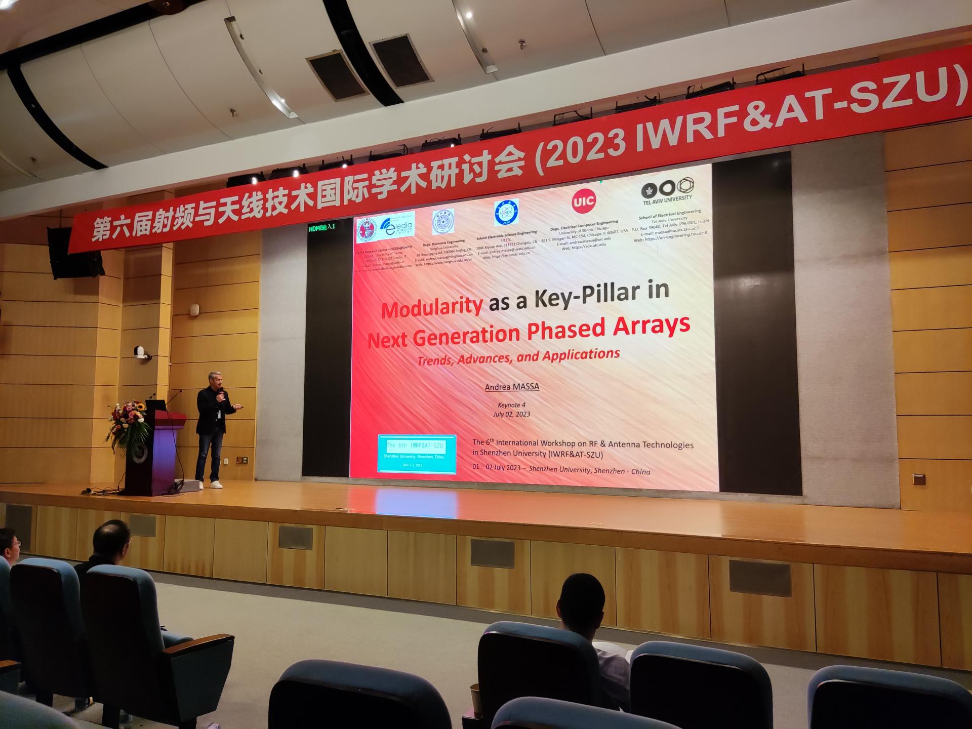 Prof. Andrea Massa from University of Trento delivered a keynote speech entitled “Modularity as a Key-Pillar in Next Generation Phased Arrays -Trends, Advances, and Applications”: