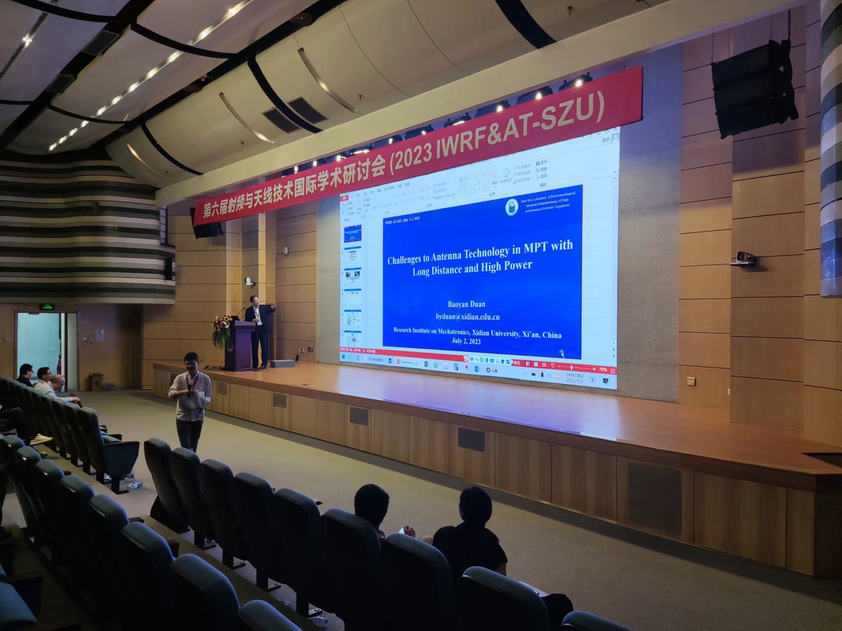 Prof. Baoyan Duan from Xidian University delivered a keynote speech entitled “Challenges to Antenna Technology in MPT with Long Distance and High Power”: