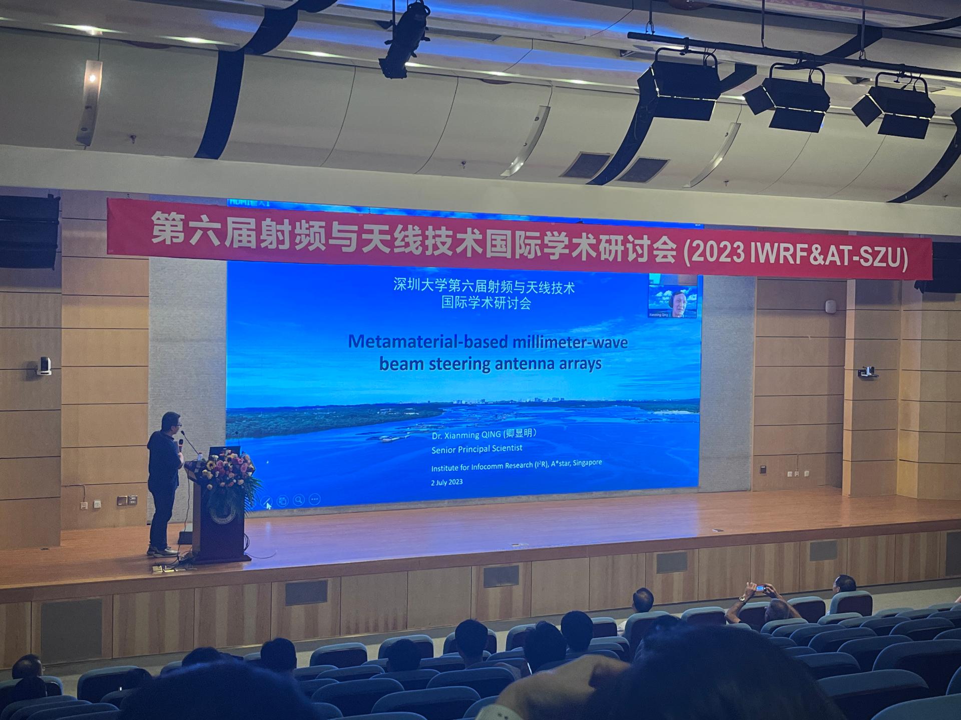 Prof. Xianming Qing from Institute for Infocomm Research (I2R) delivered a keynote speech entitled “Metamaterial-Based Millimeter-wave Beam Steering Antenna Arrays”: