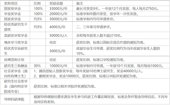 为鼓励学生专心学业,覆盖全部博士生的奖助学金达5.3万/年,部分学习和科研能力强的博士生最高可获得奖助学金超16.3万/年。