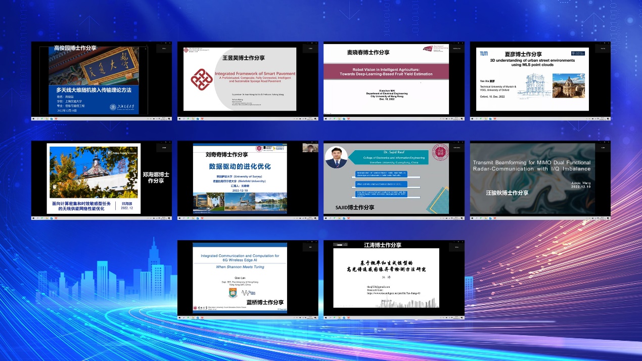 随后,来自香港大学、南洋理工大学、俄亥俄州立大学、华威大学、加拿大维多利亚大学、慕尼黑工业大学、新南威尔士大学、萨里大学、香港理工大学、香港中文大学、北京大学、清华研究院、上海交通大学、北京交通大学、中国科学技术大学、西安电子科技大学、湖北大学、湖南大学、东北大学、深圳大学等海内外高校的22位青年学者分别对各自的科研工作和最新成果展开分享,在张胜利副院长和李岩山副院长的主持下,学术报告有序进行,学者们的学术报告内容异彩纷呈,涵盖无线通信理论,移动边缘计算,数据驱动优化,机器学习,人工智能与计算机视觉,深度学习与等效电路、医学数据处理、智能农业的交叉融合,电磁学,半导体,光学与激光器研制等领域的前沿研究,研究思路非常新颖,令在座师生切实感受到了一场学术盛宴。