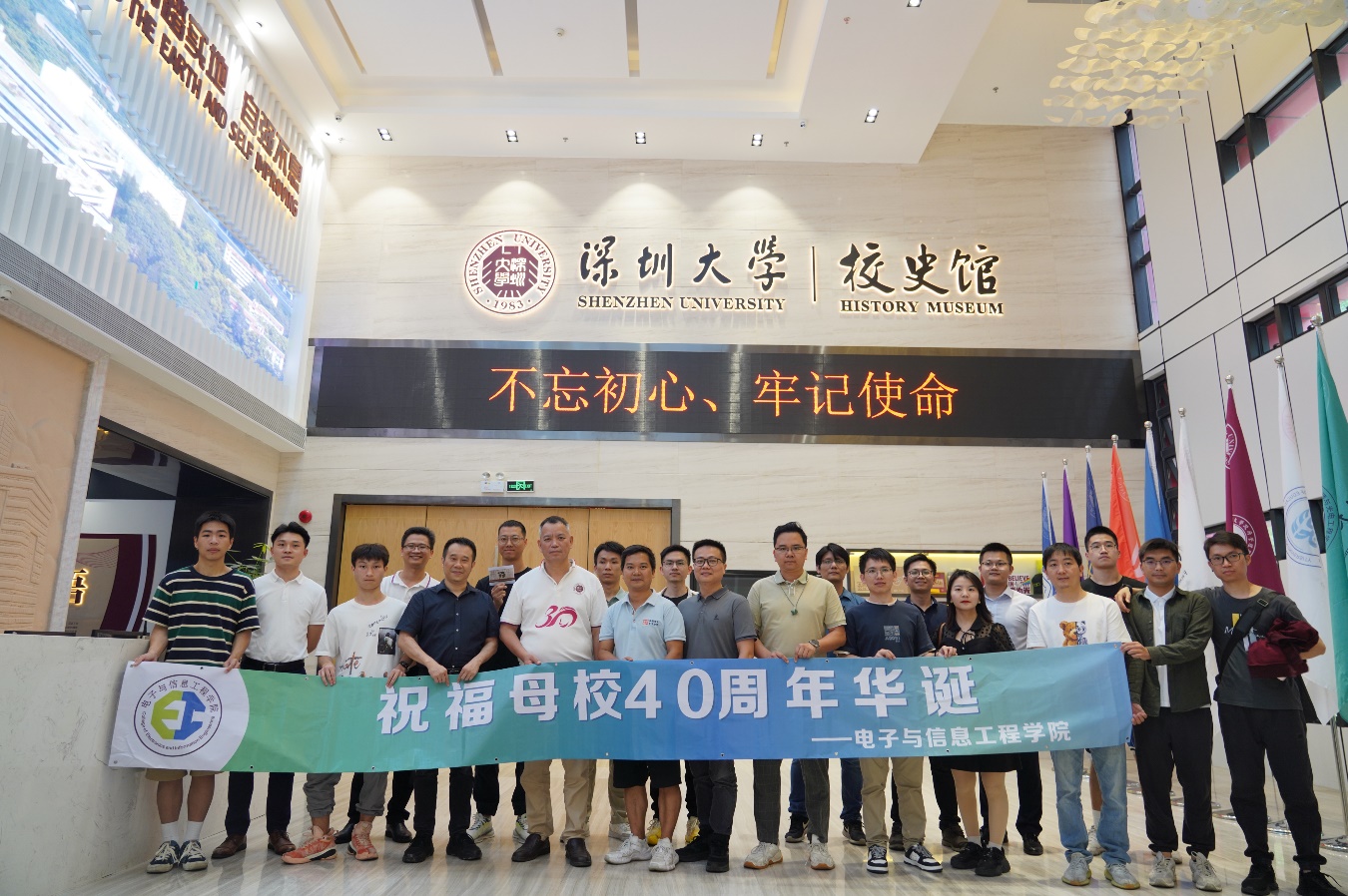 游览完校园后,一行人回到放飞梦想的起点,电子与信息工程学院的大本营——致信楼,留下了大合影。学院欢迎校友们返校,期待更多校友常回家看看!