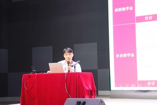 叶可慧老师为新生们讲解了本科生奖学金的评选方法。曾铭然老师为新生们讲述了本科生助学金、贷款医保的缴纳。王悦力老师介绍了研究生奖助学金体系及荔研优学的评选条件。吴发强老师主要为新生们讲解了勤工俭学奖的具体内容。校级、院级以及社会奖学金的颁发激励着同学们用知识创造财富,用创新打造奇迹;助学金使得热爱学习、渴望知识与进步的同学们无需担忧财务困难,只管大步迈向星辰大海。