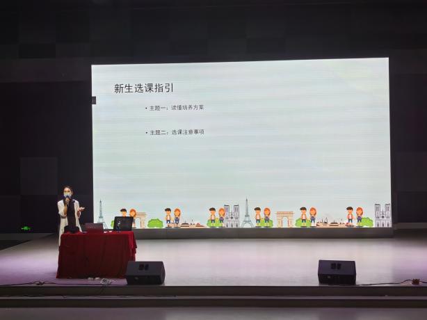 吴珮琼老师分“读懂培养方案”、“选课注意事项”两个主题作了新生选课指引,指导新生更好了解学业课程。