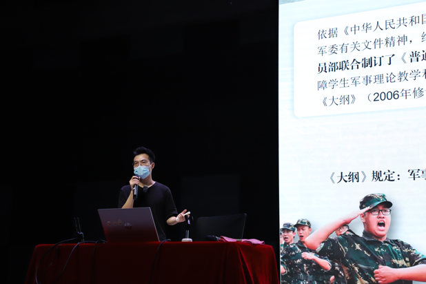 王铄瀚老师列举四级英语的案例,警醒新生树立反诈骗意识,正确甄别网络电信与现实生活中的各类信息,促进新生加强自我防范意识,提高识骗防骗能力。同时,动员新生积极参与军事演练,对军训事项提出详细要求。