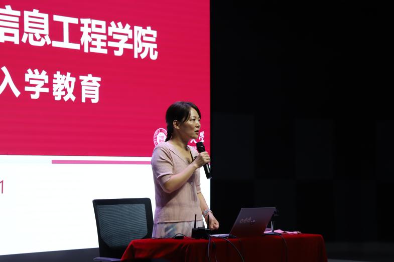 开场,杨丹老师代表学院领导和全体老师热烈欢迎电信“萌新”的到来,大学之道,在明明德,在亲民,在止于至善,杨老师点明 大学入学教育是人才培养工作的重要环节,它对于帮助新生适应大学阶段的学习、科研、生活,引导大学生踔厉奋发,成长成才具有重要意义,而后介绍深圳大学历程,寄语新生:秉持自立,自律,自强校训,具备扎实的学识素养,成长为有大爱的公民。