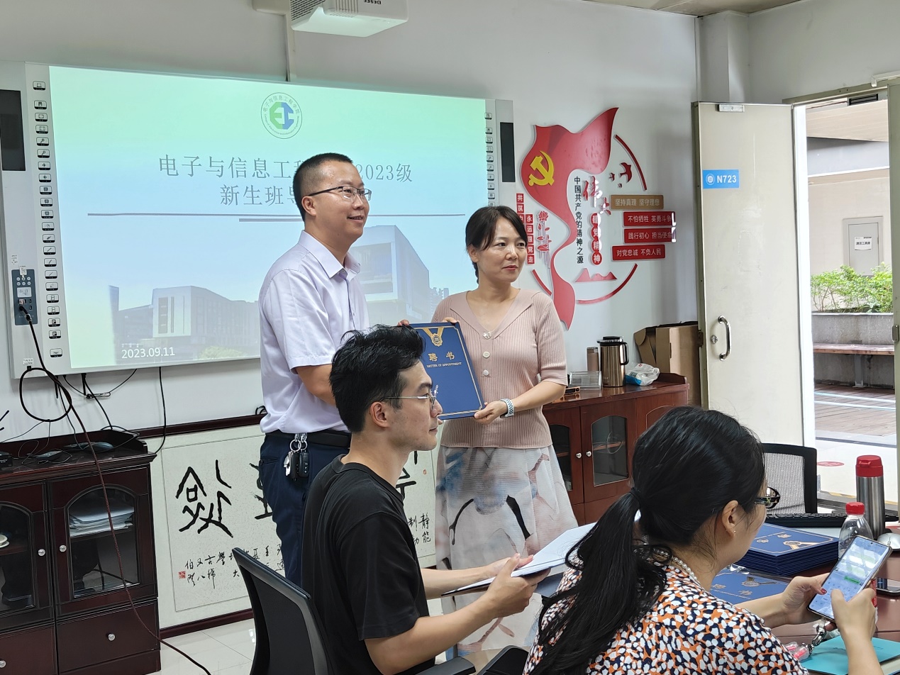 2023年9月11日,电子与信息工程学院于致信楼N723会议室成功举办了2023级新生班导师工作会议。本次参加会议的有党委副书记杨丹、2023级全体新生班导师、2023级新生导生组长、相关辅导员。此次会议由杨丹副书记主持,会议旨在欢迎新任班导师,并就新学期班导师工作进行安排与交流。