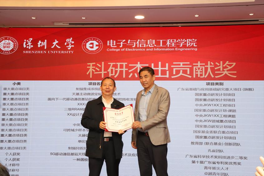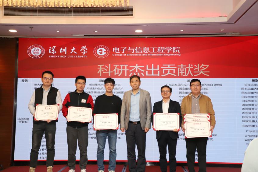 然后颁发的是“科研杰出贡献奖”,“科研杰出贡献奖”表彰的是过去一年来老师们在科研项目、成果获奖、人才称号等方面做出突出贡献的老师,毛军发、黄磊、袁涛、赵晓锦、葛磊、何业军、李斌、何文龙、韩素婷、毕宿志、欧阳乐等老师获此殊荣。丁文华院长为获奖老师颁奖。