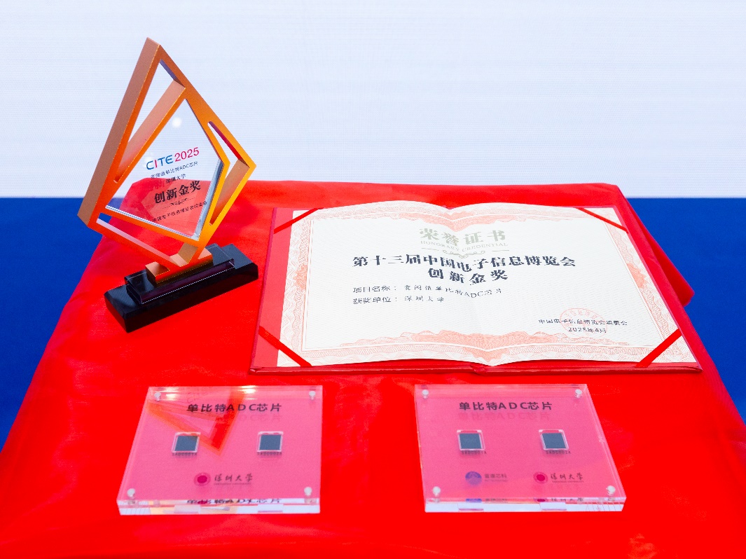 本届CITE2025,深圳大学黄磊教授团队携变阈值单比特芯片及相关产品亮相博览会,凭借其技术上的突破性创新,与联发科技、TCL华星光电、中国长城科技集团等知名企业一同成功斩获第13届电子信息博览会创新金奖,彰显“中国智造”硬实力。