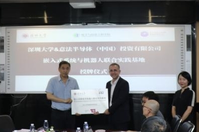 5月15日,深圳大学电子与信息工程学院校企合作项目揭牌仪式在致信楼710会议室举行。中国工程院院士、电子与信息工程学院院长丁文华,意法半导体中国区功率分立和模拟产品部市场和应用副总裁Francesco Muggeri,海目星激光科技集团股份有限公司战略三部总经理张业平,深圳市依元素科技有限公司副总经理秦岭,招商银行后海海月支行行长郭延龙出席揭牌仪式,十余位学院及企业代表参加。会议由电子与信息工程学院副院长张沛昌主持。