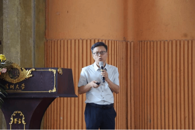 黄磊从“校情院史”“师资队伍”“教学情况”等方面全方位、多角度地介绍了电信学院雄厚的师资力量与一流的教学、科研设施,寄语大家“奋力跑出深大加速度,全力创建学科双一流”。