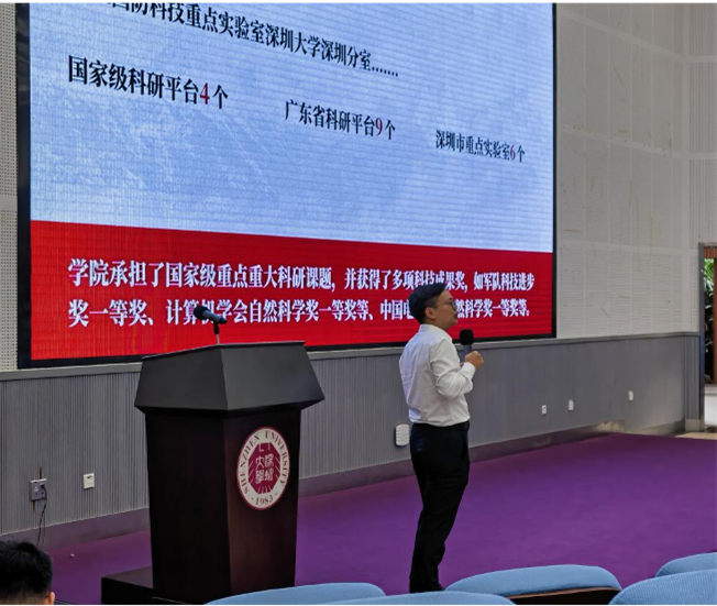 最后,黄磊教授以学院“双一流”学科建设情况,向在场的同学进行了一次深入的剖析。他指出,近年来学院学科建设发展十分迅速,学院信息与通信工程专业属于广东省高水平大学建设重点学科,拥有射频异质异构集成全国重点实验室等一批重量级科研平台,办学基础牢。近年来,学院承担了国家级重点重大科研课题,并获得了多项科技成果奖,如军队科技进步奖一等奖、计算机学会自然科学奖一等奖、中国电子学会自然科学奖一等奖等。他强调,学院学科发展仍然存在很多不足,两会精神为我们指明了前进的方向,要重点不断提升学科建设的核心竞争力、切实增强学科建设对人才培养的内在支撑力、持续加强学科建设服务国家与地方战略需求的社会贡献力。他号召同学们要积极践行两会精神和深大精神,坚定理想信念,把握历史机遇,勇于砥砺奋进,练就过硬本领,努力成为立大志、明大德、成大才、担大任的时代新人。