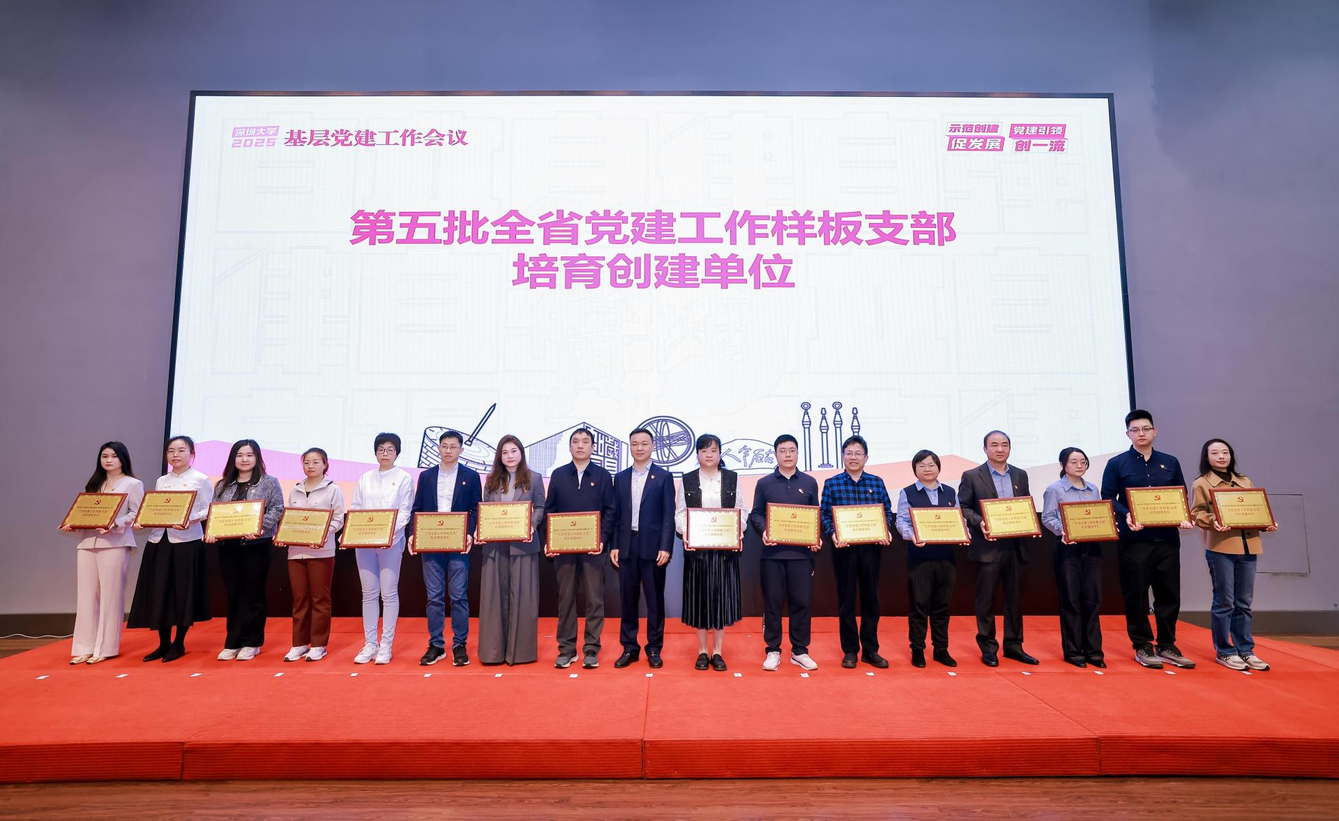 3月5日上午,深圳大学2025年基层党建工作会议在校友广场多功能厅隆重举行,我院党员代表上台接受表彰。