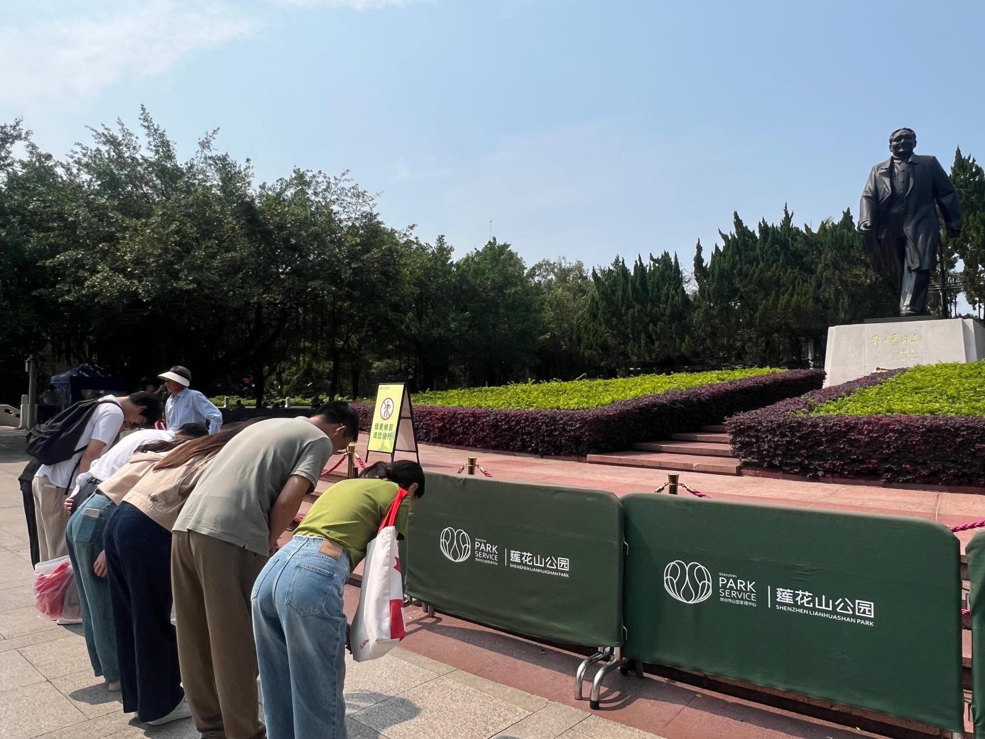 在参观环节中,党支部书记分享了对邓小平同志的伟大事迹的见解,引导党员同志们积极参与分享与学习。通过聆听讲解、分享英烈事迹,党员们进一步了解了莲花山公园烈士纪念设施的历史背景以及深圳在不同时期的英烈代表故事,从抗战烽火到改革开放,再到新时代的科技突围,英烈精神始终贯穿城市发展的红色脉络。