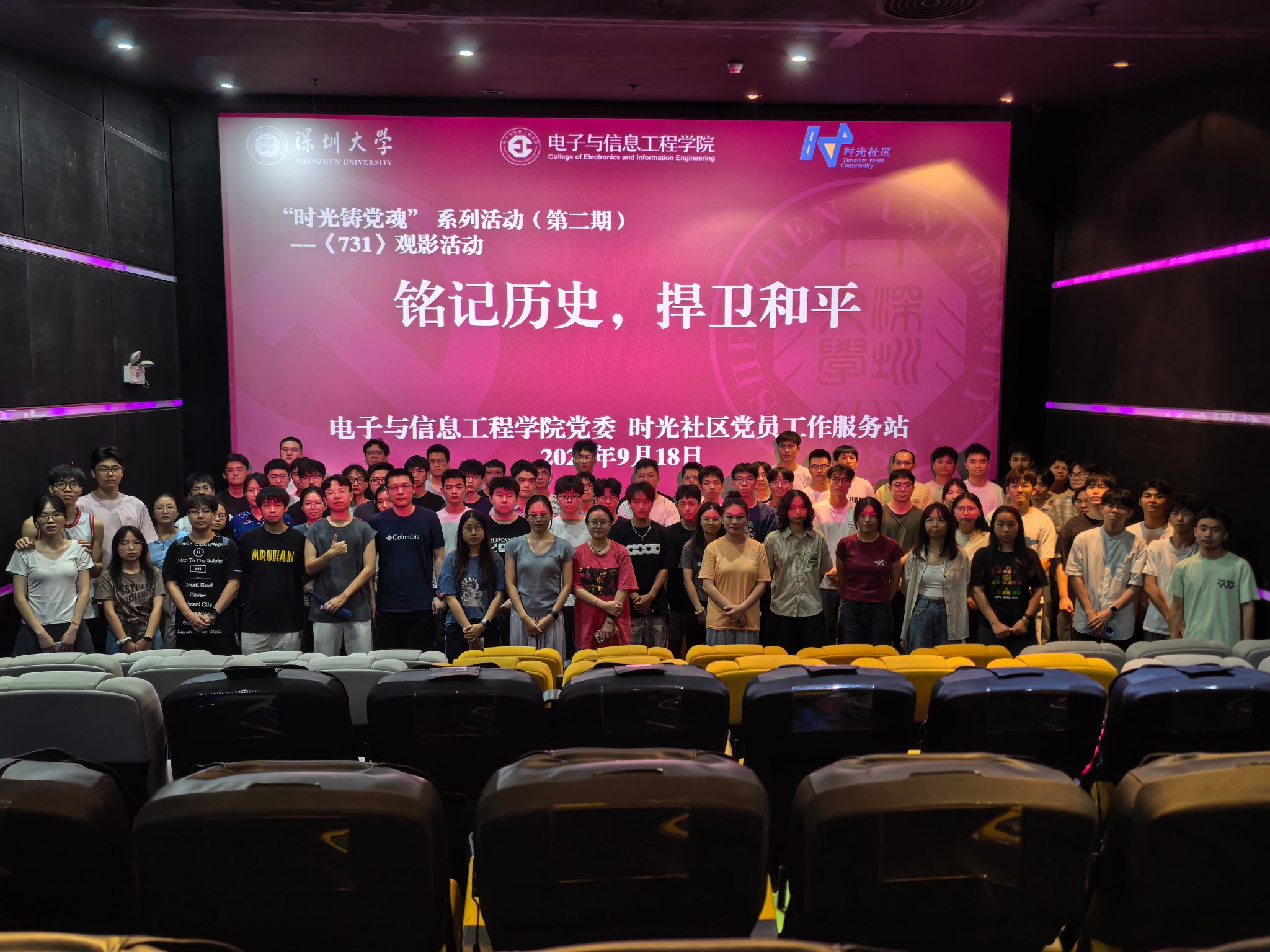 九一八事变爆发94周年之际,为深化爱国主义教育,深圳大学时光社区联合电子与信息工程学院党委举办的“时光铸党魂”系列活动第二期——“铭记历史,捍卫和平”《731》观影活动,于9月18日南山书城华夏星光影城举行。