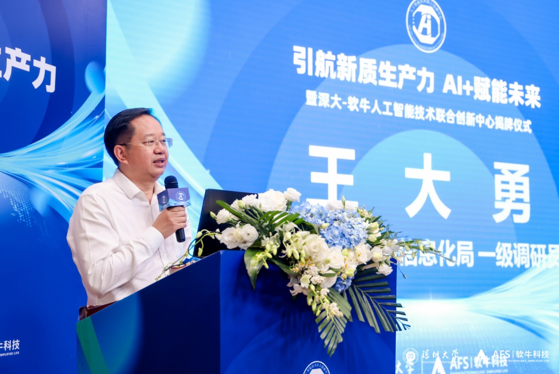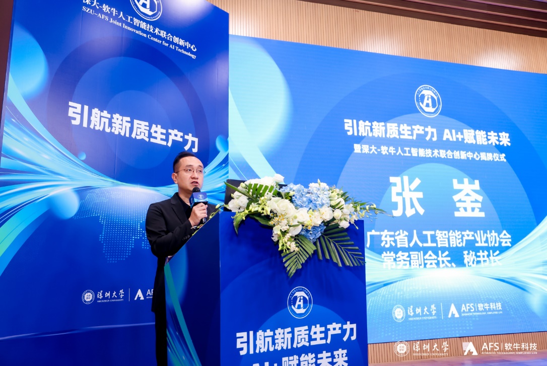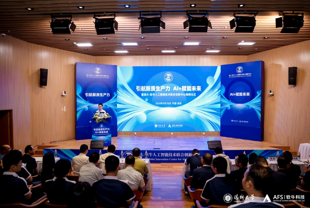 2024年4月18日下午,以“引航新质生产力,AI+赋能未来”为主题的深大-软牛人工智能技术联合创新中心揭牌仪式在致艺楼一楼报告厅举行。深大-软牛人工智能技术联合创新中心依托深圳大学电子与信息工程学院、广东省智能信息处理重点实验室建立,将充分利用深圳大学教学和科研力量,联合软牛科技集团的产业化资源,聚焦人工智能领域具有重要意义和应用价值的关键问题,进行创新理论和先进技术的科学研究与产品研发,推动人才培养、产学研合作以及科技成果转化。各级政府领导、行业协会负责人、投资机构及合作机构代表、深圳大学师生代表、软牛科技集团员工代表等齐聚一堂,共同见证了这一重要时刻。