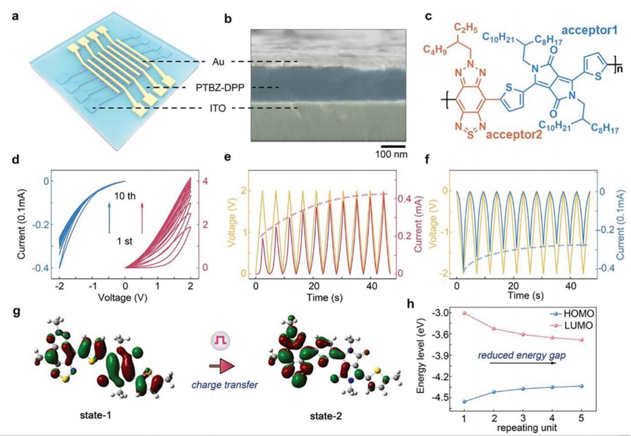 图1. PTBZ-DPP忆阻器的设计思路和电学表征。