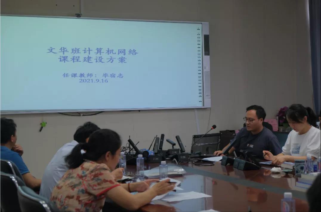研讨会由文华班项目组主任黎冰副院长主持。首先,黎冰副院长围绕 “以学生与课程质量为中心”的总体思路提出了文华班课程建设的目标与要求,并邀请本学期6门新开课程的7位老师分别围绕课程目标、教学大纲、教学计划、创新实践环节、与传统课程对比分析、双语教学、教材选择等方面进行展示并展开讨论。