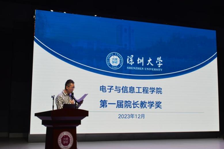 2023年12月29日,深圳大学电子与信息工程学院在沧海校区致理楼L3二楼演播厅举办了第一届院长教学奖现场评审会暨颁奖仪式。电子与信息工程学院院长、中国工程院院士丁文华老师,电子与信息工程学院党委书记周浩江老师,教学督导团团长孙忠梅老师,教务处副处长曾明老师,全体参评教师、教学指导分委员会委员及近百位学生代表出席。会议由学院教学副院长黎冰老师主持。