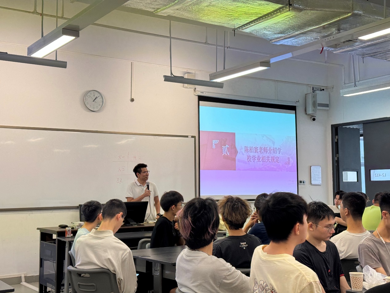 学工办主任陈柏寰老师对学校学业相关规定进行了详尽的解读,让同学们更加清晰地了解学校的学业要求与标准,从而为自己的学习设定明确的目标和方向。陈老师也鼓励同学们在面对生活中的困难和挑战时,保持积极乐观的心态,向老师、家长和朋友寻求帮助,共同寻找解决问题的办法。学院始终将同学们的学业放在首要位置,陈老师还表示学院将为大家提供必要的资源和指导,帮助同学们顺利迈过每一个学习关卡。