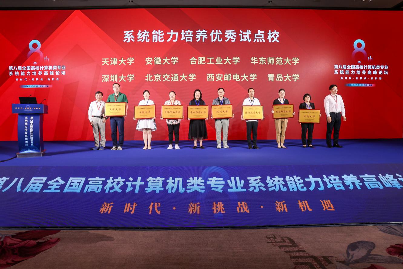 2024年5月17日-19日,教育部高等学校计算机类专业教学指导委员会主办的“第八届全国高校计算机类专业系统能力培养高峰论坛”上,深圳大学因“改革特色尤为明显,改革效果尤为突出”,荣获“计算机类专业系统能力培养优秀试点高校”荣誉,电子与信息工程学院教授曹文明教授参加授牌仪式。