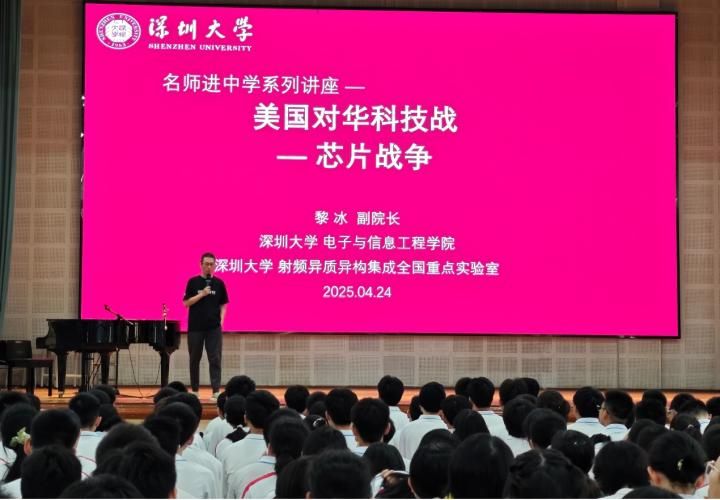 2025年4月27日下午,我院黎冰副教授走进佛山市郑裕彤中学,为学生带来了主题为《美国对华科技战—芯片战争》的精彩演讲。
