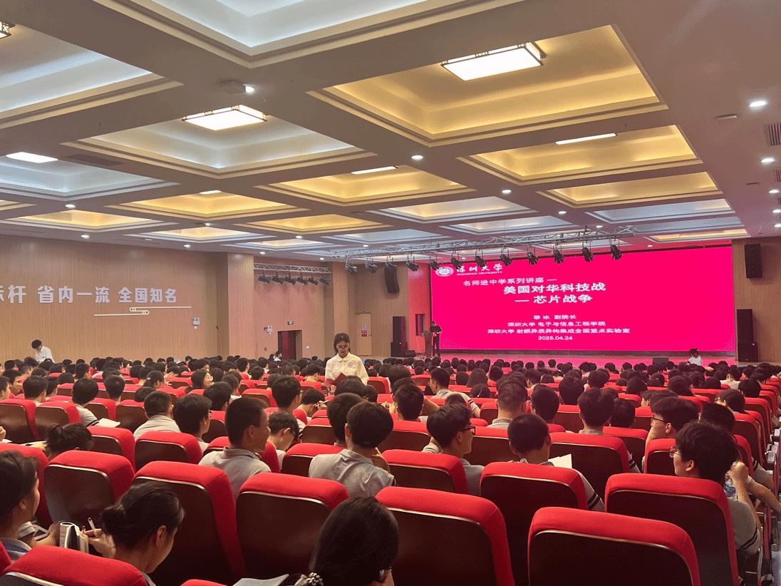 4月24日晚,我院在惠州市惠州中学举办“名师进中学”系列活动暨“我的中国‘芯’”思政课堂。黎冰副教授为高一和高二年级的学生们呈现了一场题为《美国对华科技战——芯片战争》的专题科普讲座。通过浅显易懂的讲解和生动的案例分析,为中学生们开启了一扇通往科技领域前沿的大门。