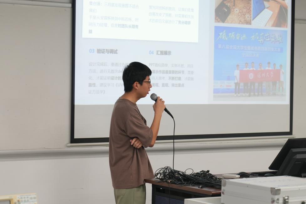 分享会伊始,林跃璁老师指出,学科竞赛是提升实践能力、培养团队协作精神的重要平台,鼓励同学们以赛促学、以赛促创。学院也将持续为参赛队伍提供设备、导师等资源支持,为同学们的科创之路保驾护航。