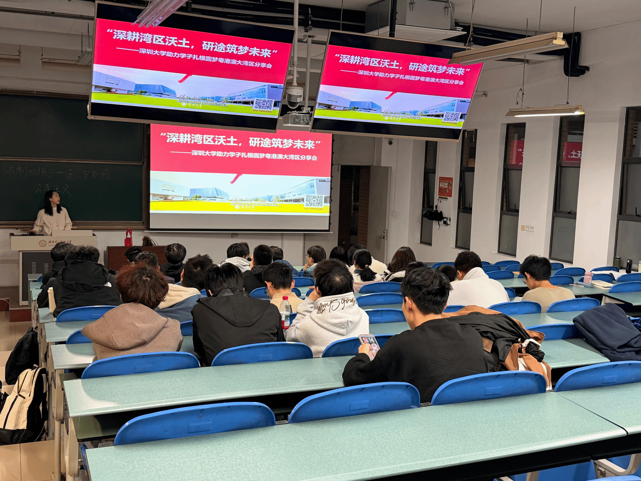2025 年10月24日下午,深圳大学电子与信息工程学院招生宣讲团走进西安电子科技大学南校区开展“‘深耕湾区沃土,研途筑梦未来’——深圳大学助力学子扎根圆梦粤港澳大湾区” 主题分享会。此次活动旨在向西安电子科技大学优秀学子全面展示深圳大学研究生培养优势。