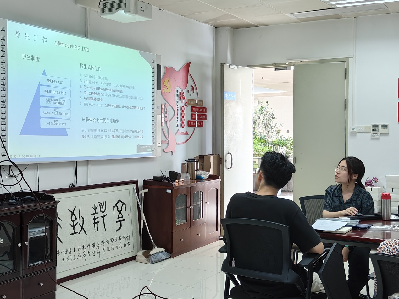 龙菲老师简要介绍了导生制度和导生的具体工作。她强调班导师应该贴近学生生活,同时导师应与导生组长和导生建立紧密联系,共同关注新生学业发展和心理健康发展。