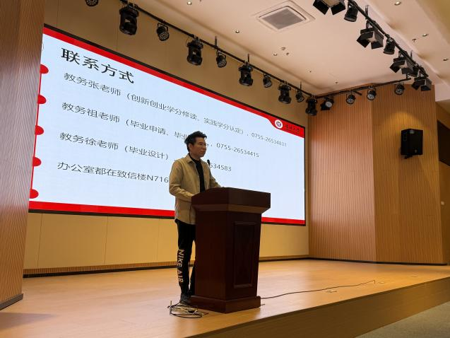紧接着,杜罗坤老师分享了我院各专业当前就业市场的最新动态,提供了宝贵的求职建议,对同学们的就业再次进行积极动员,并详细讲解毕业生三方协议签署的流程及注意事项。杜老师指出,面对复杂多变的外部环境,同学们不仅需要具备扎实的专业知识,还要不断提升个人综合素质和社会适应能力,以更好地迎接未来的挑战。