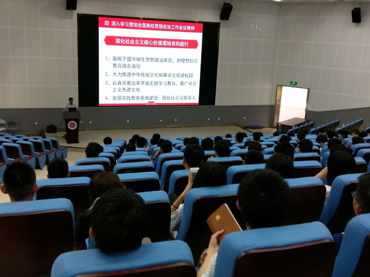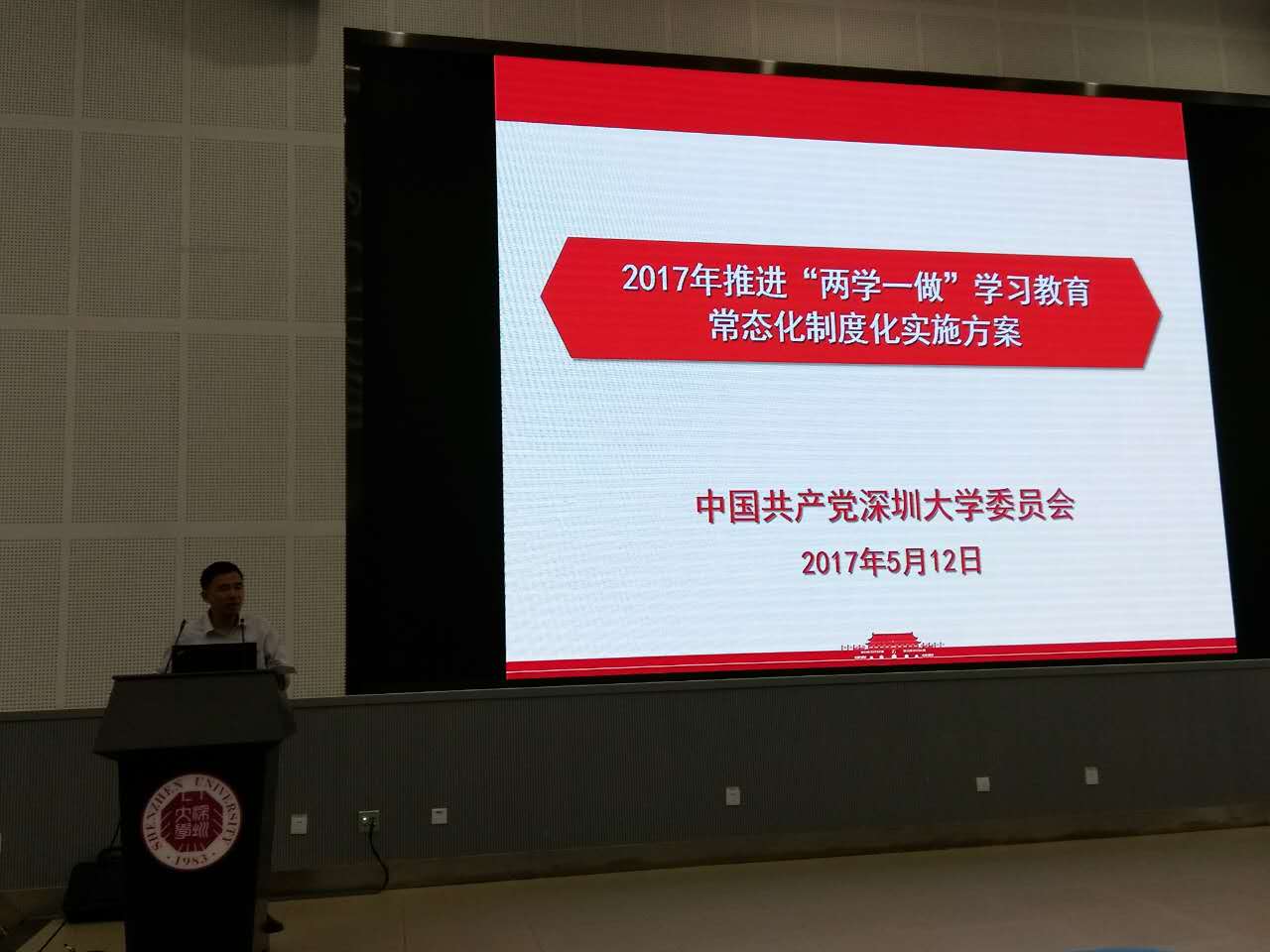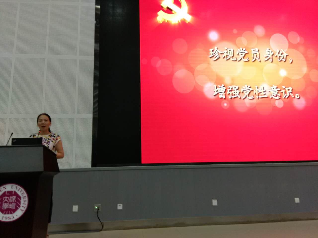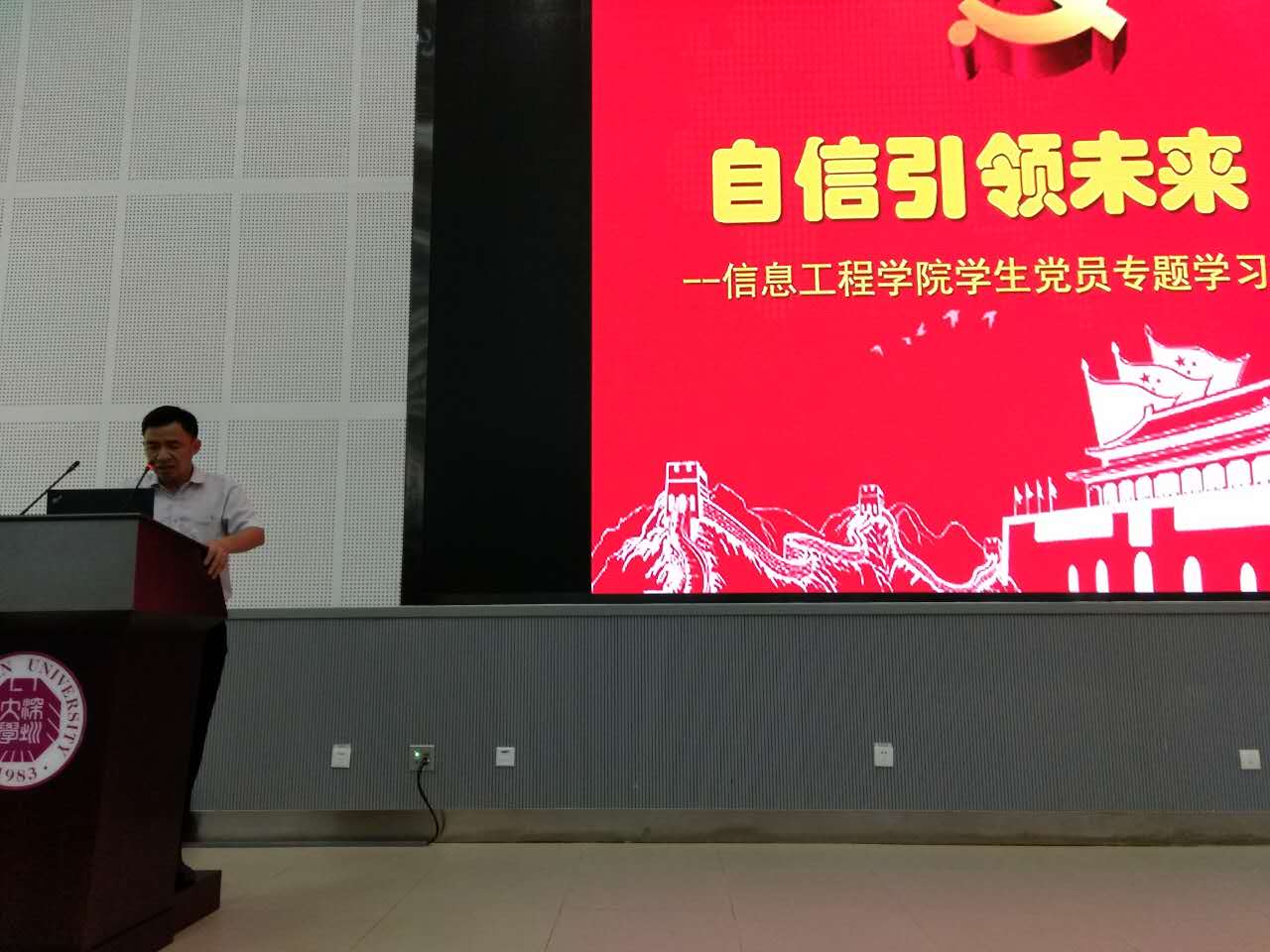 2017年6月9日中午,学院在电子学院报告厅召开全体学生党员大会,会议主题包括学院党委书记给全体党员上党课、进行毕业生党员党性教育等2个方面。出席会议的有学院党委书记蔡茂国教授、党委副书记林志雄老师、党务秘书杨丹老师以及全体学生党员。 会上,蔡书记首先传达了校党委关于推进“两学一做”常态化制度化工作的有关精神,部署学院落实“两学一做”常态化制度化的工作,学习习近平总书记对广东省工作指示精神,并对全体党员提出了新的要求,要求全体党员聚焦重大意义、目标要求和指导原则,把思想和行动统一到中央、省委、市委和校党委的部署上来;聚焦真“学”实“做”,以常态化的态度对待学习、以制度化的方式推动学习,教育引导学生党员践行“四个合格”; 聚焦支部建设和作用发挥,促进支部组织建设和制度建设;聚焦查找解决问题和推动中心工作,确保学习教育落地见效。接下来蔡书记为全体党员做了一个《自信引领未来》的专题报告,蔡茂国以习近平总书记提出的“四个自信”为引线,引导学生党员深刻认识我们党领导中国革命、建设、改革取得的辉煌成就,深刻认识党的领导的历史必然性和现实必要性,深刻认识我们党的性质宗旨理论和路线方针政策。从中国现今的科研力量和成果、日常生活反映的科技水平、工业技术水平等方面与美国进行比较,解读中国科技实力正以加速度向美国逼近,处于世界第一集团,列举了大量的事实和数据,证明了在中国共产党的领导下现今中国取得的辉煌成就,引导全体党员坚定“四个自信”,特别是文化自信,希望全体党员好好学习,增强党性修养,为实现中华民族伟大复兴的中国梦共同努力奋斗。 会议第二阶段进行毕业生党员党性教育,首先,杨丹老师就今年的毕业生党员档案的转出做了说明,希望各位党员按照所列举的五类情况选择相应的一类落实自己的组织关系;接下来党委副书记林志雄老师落实校党委的安排,对毕业生党员开展“珍视党员身份,增强党性意识”教育,对全体党员在学习、生活和工作方面提出了要求和希望,希望全体党员不辜负学校的期望,要时时严格要求自己,处处以身作则,率先垂范,以实际行动回报党组织的关怀和信任,发挥党员不忘初心跟党走的坚定信念,践行“两学一做”,做到“四个合格”。 通过书记上党课以及开展毕业生党员党性教育,进一步增强了学生党员的组织性和纪律性,提升了全体党员党性修养,同时也使我们“两学一做”学习教育常态化制度化稳步推进,取得成效。