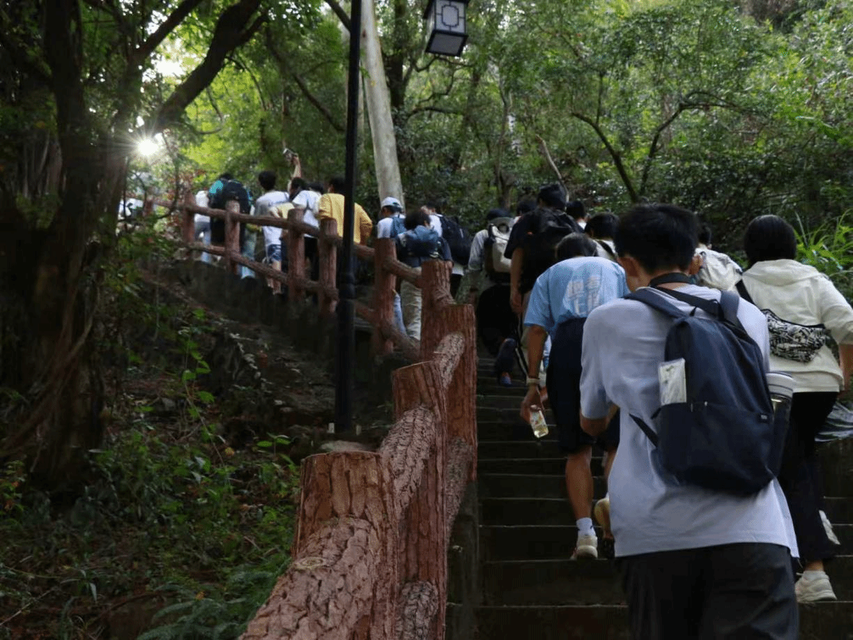 “让红色精神熔铸于汗水,让理想信念扎根于山川。”为持续深化沉浸式思政教育,电子与信息工程学院团委实践部联合深大电信跑团,于2025年10月25日组织近20名“青马筑梦营”学员和跑团成员共赴南山公园,开展“行走的思政课”活动。活动旨在通过身体力行的登山实践,深刻体悟中国共产党人在革命时期所展现的攻坚克难、团结一心、追求胜利等宝贵精神品质。这场行走的课堂,以山峰为载体,以脚步为墨迹,绘就了新时代“芯”青年的精神底色。