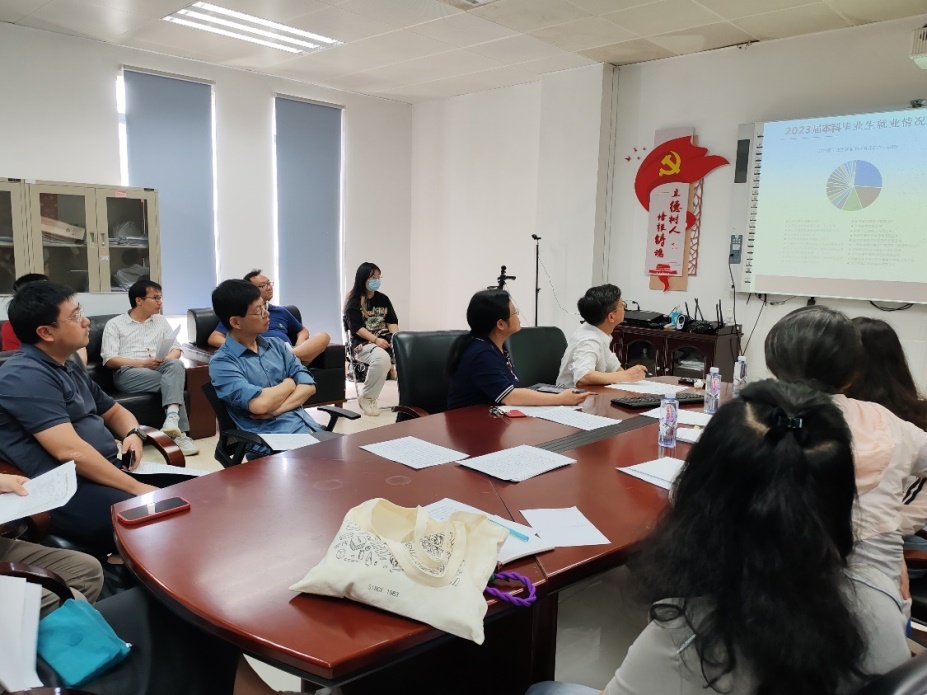 会上,副书记杨丹为各位参会领导和成员传达了学校关于2024届就业工作的会议精神,明确指出要紧密围绕会议精神,细化任务,明确责任,确保每一项工作都能落到实处,为2024届毕业生的顺利就业提供有力保障。随后,杨书记介绍了学院在2023年的就业数据,并提出2024年学生就业的目标方案,整体分析了目前毕业生的就业数据,以及毕业生就业方向、工作目标方案、毕业生就业落实情况进展。杜罗坤老师为各位参会老师介绍了目前各班的具体就业情况。