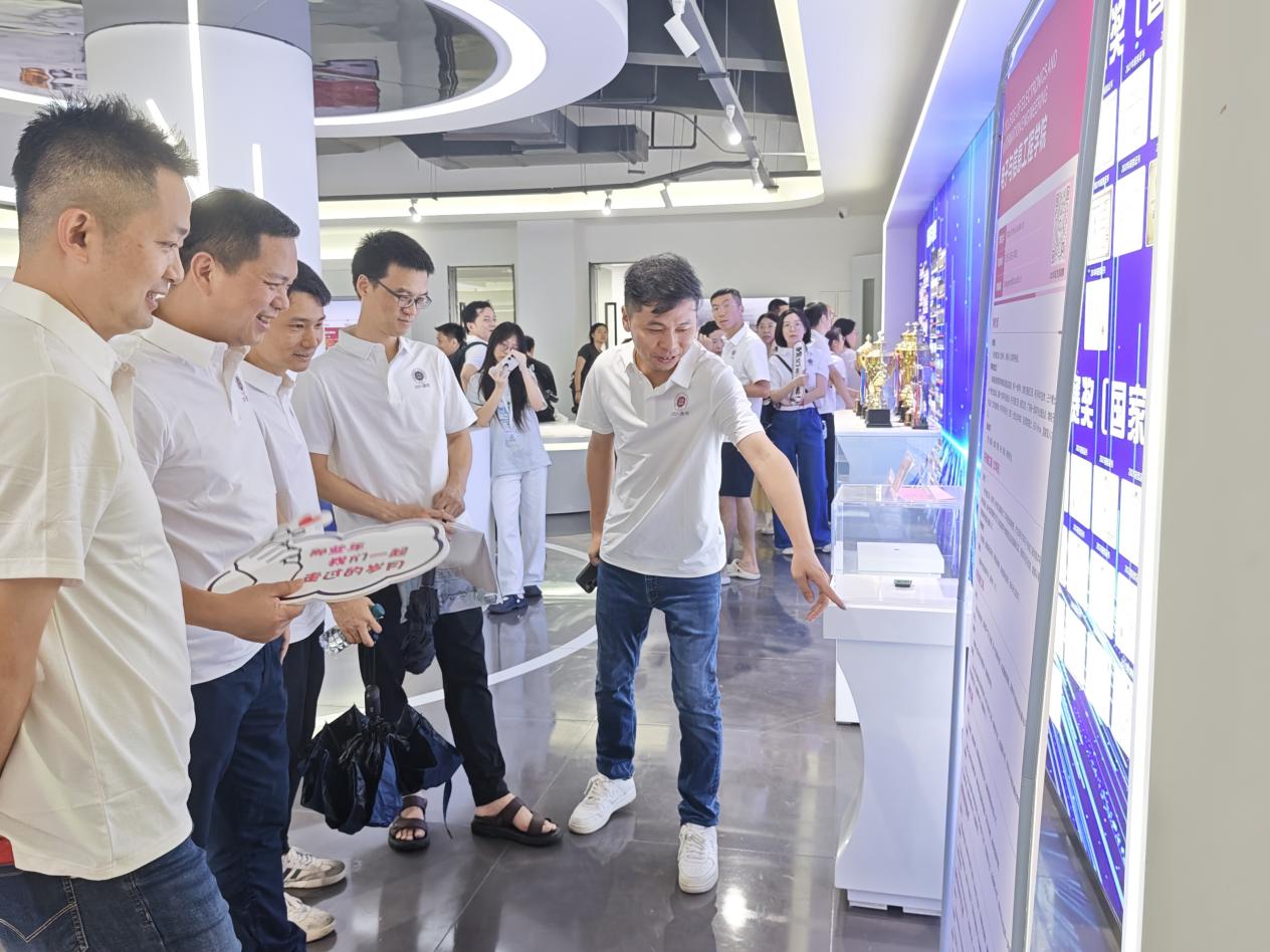 下午三点半,校友们踏入学院展厅106,在历届毕业生的合影前驻足流连,在学院近年斩获的国家级、省级、市级荣誉墙前驻足凝视,更在5G/6G先进天线技术、NanoSAR无人机系统等前沿科技成果展示区驻足探索。学院的宣传短片与射频异质异构集成国家重点实验室的资料,让校友们直观感受到学院在学术与科研领域的蓬勃发展。