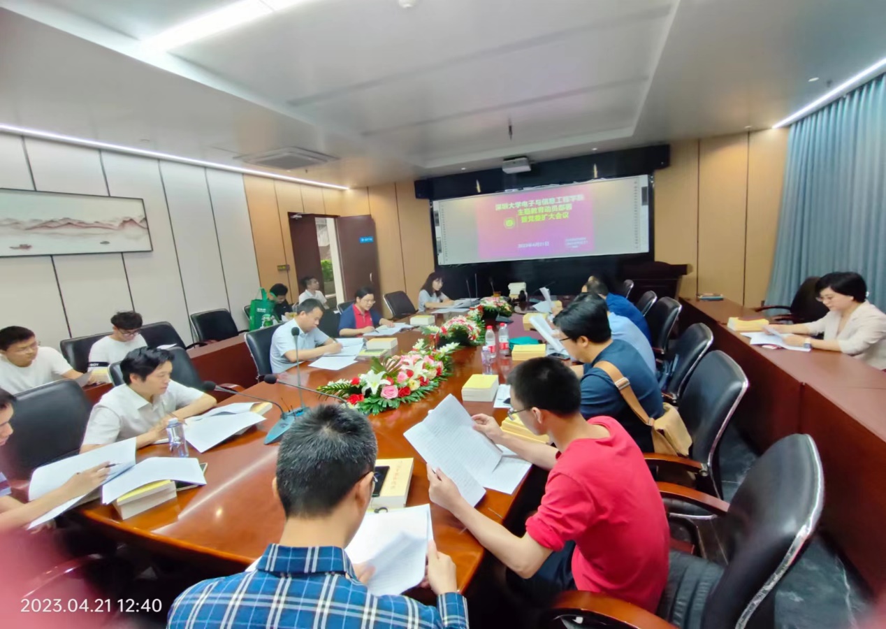 随后,周浩江对下发的《电子与信息工程学院关于开展学习贯彻习近平新时代中国特色社会主义思想主题教育的实施方案》进行一一解读,要求学院各位中层领导干部和党支部深入领会主题教育活动的重大意义、准确把握目标要求,认真落实工作安排,加强组织领导。周浩江对《电子与信息工程学院主题教育部署台账(2023年4月—8月)》从领导干部和党支部两个层面进行部署,明晰大家的学习任务和学习要求。号召大家要深刻认识开展主题教育的重大意义,以最高标准、最严要求、最实作风开展主题教育,形成领导带头示范、层层带动落实的良好效应,引导推动全院主题教育广泛深入开展。