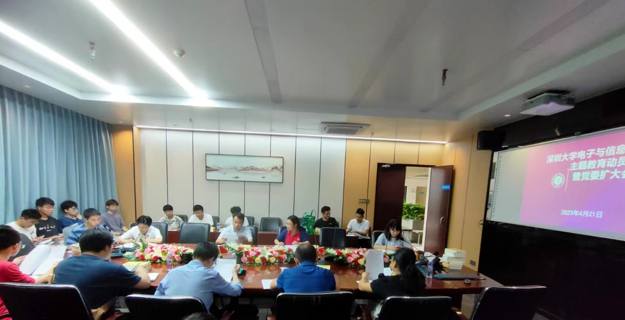 4月21日中午,电子与信息工程学院党委在致信楼N710会议室组织召开深入开展学习贯彻习近平新时代中国特色社会主义思想主题教育动员部署暨党委扩大会议。会议落实党中央决策部署和省委、市委、校党委工作安排,就学院开展学习贯彻习近平新时代中国特色社会主义思想主题教育进行动员部署。学院党委周浩江书记作动员部署工作讲话,全体党委委员和十九位党支部书记参加会议。