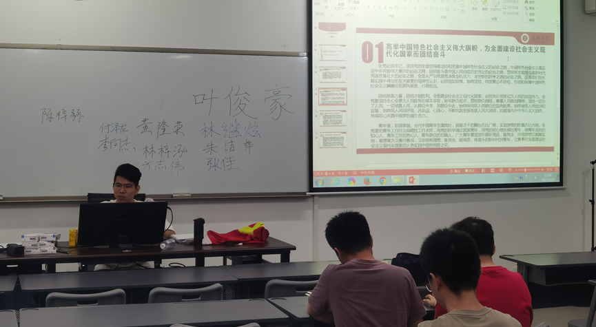2023年4月27日晚,电子与信息工程学院本科生电科党支部在致理楼L1-211教室开展深入开展学习贯彻习近平新时代中国特色社会主义思想主题教育——专题学习《习近平著作选读》。活动由支部书记陈柏寰老师主持,支部党员共26人参加了本次教育活动。