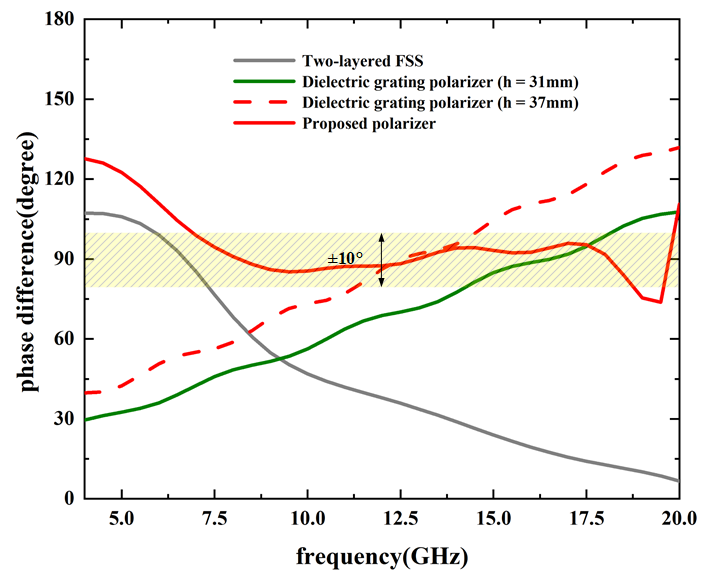 所提出的极化表面和传统表面的相位差随频率变化曲线