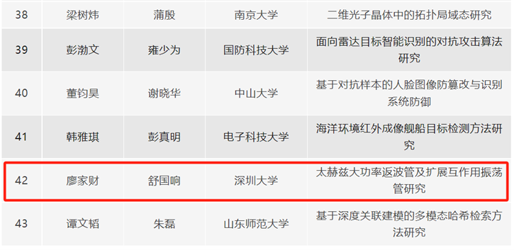 中国电子学会于2024年1月17日公布了“2023年度中国电子学会博士/硕士学位论文激励计划”(中国电子学会优秀博士/硕士学位论文)遴选结果。经过形式审查、专家函审和专家会审等程序,拟确定25篇博士学位论文和43篇硕士学位论文入选。我院舒国响副教授(来自何文龙特聘教授团队)指导的研究生廖家财获评优秀硕士学位论文,此次系我校首次获评中国电子学会优秀硕士学位论文。在广东省高校与科研单位中,获奖单位仅2家(中山大学2篇,深圳大学1篇)。